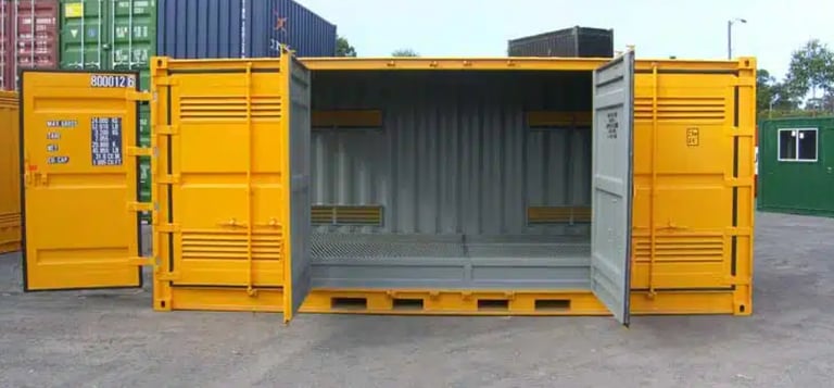 Our dangerous goods storage containers are available in 3 metre and 6 metre sizes and are designed to ensure maximum safety to you, your workers, and the general public. We also offer 20 foot high cube side opening containers for maximum storage space, and can also design 40 foot units if required.