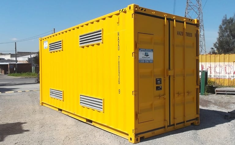 Dangerous goods containers are a must have if your company needs to store potentially hazardous goods. The strong, durable, weatherproof and secure features of general-purpose shipping containers provide an excellent service in protecting all sorts of items in transit and during storage. However dangerous or hazardous materials require an extra level of technology and expertise to ensure the protection of workers and the general public alike. Indeed, Hazardous Goods Regulations require that dangerous goods supplied in Australia should be classified, labelled, packaged, stored and transported according to particular Standards.