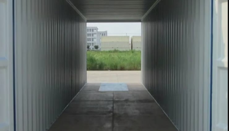 Doors: Heavy-duty steel double doors at each end with container locking bars and secure fittings.